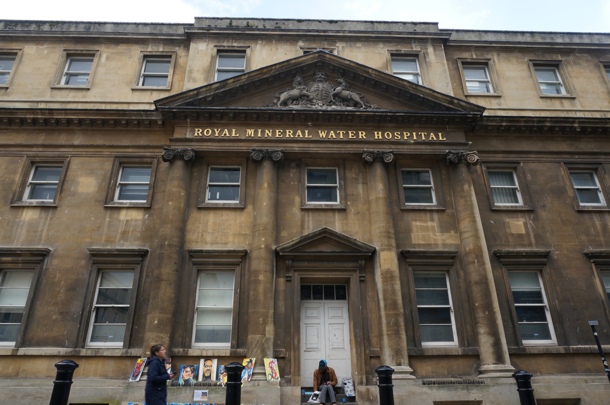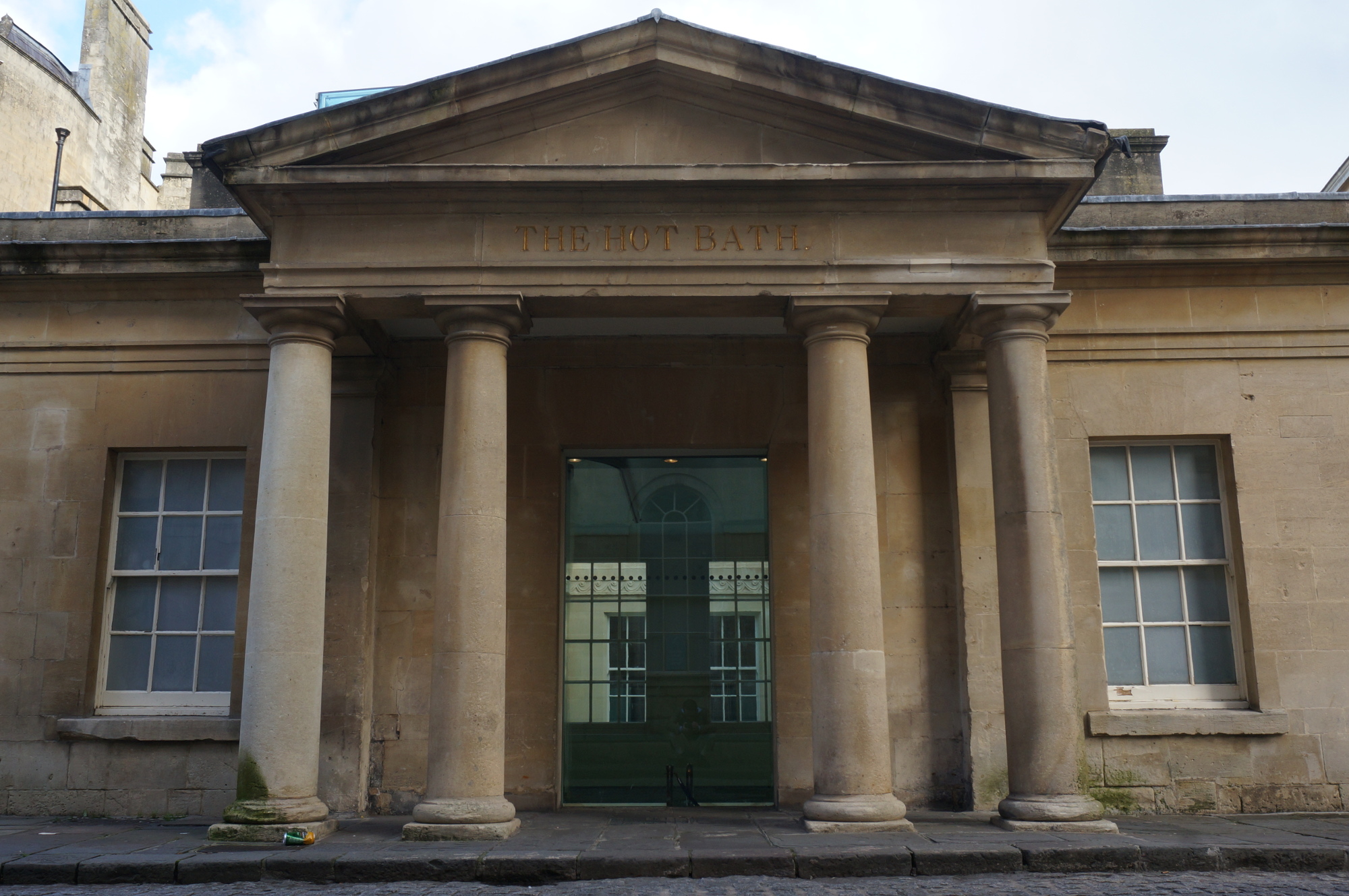 The original Roman Baths are strictly no-bathing (something to do with people catching weird diseases – seems the waters aren’t all that salutary). The exterior is shown below (muzzles-only inside):