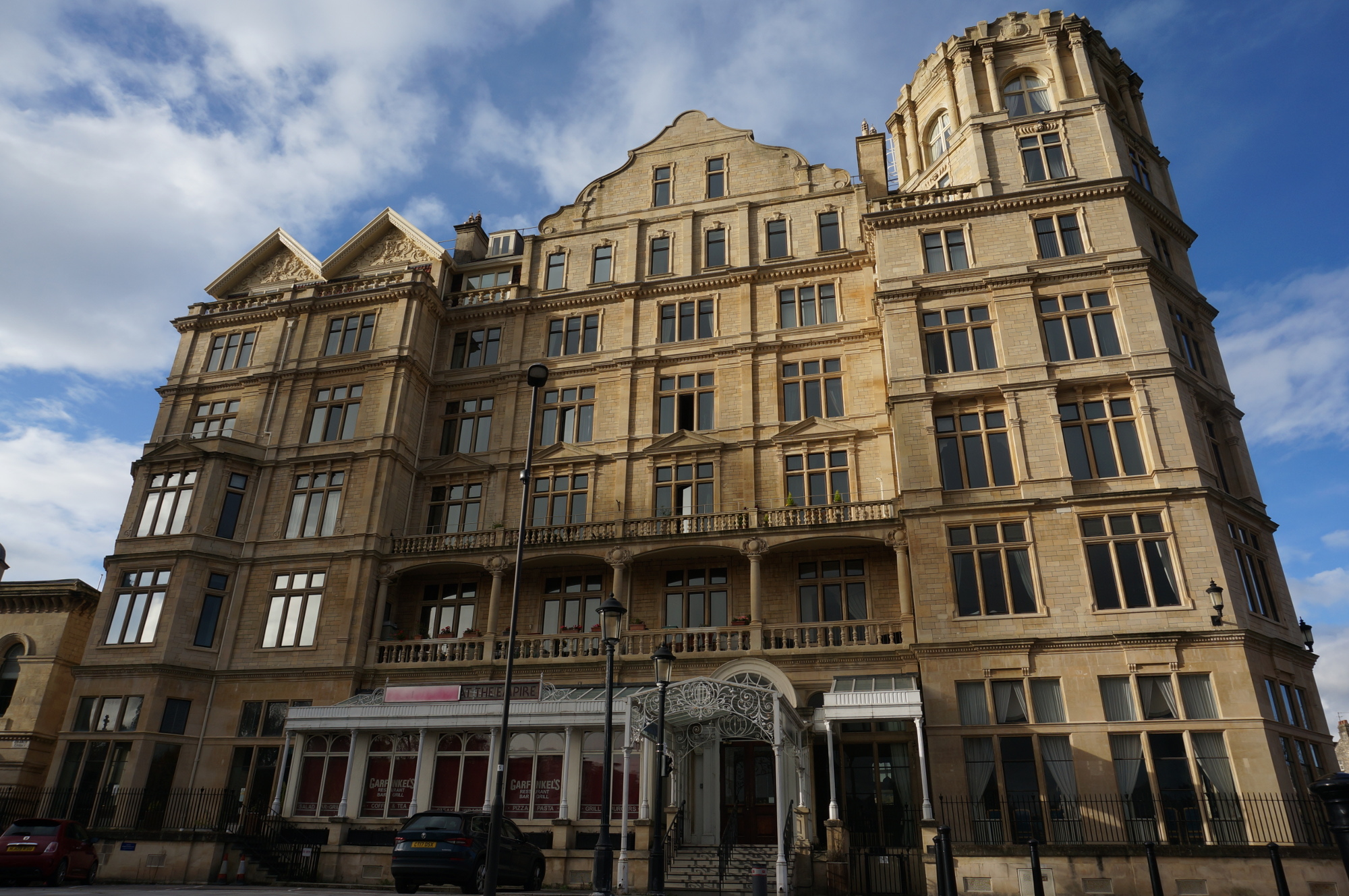 Around the corner, there’s the Empire hotel, neighbouring the Palladian bridge and weir – the latter of which can be seen grouchily grumbling out last night’s rainfall: